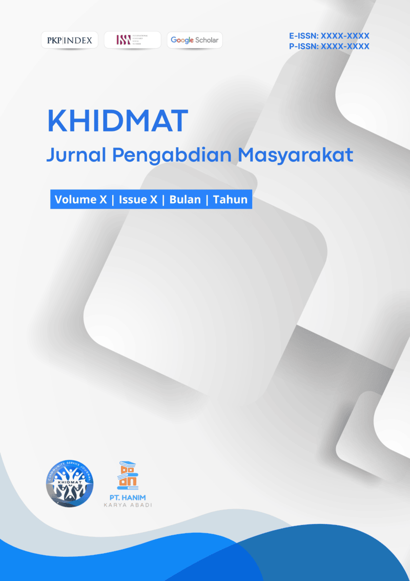 Khidmat: Journal of Community Service is a scientific journal that publishes the results of community service activities carried out by academics, researchers, practitioners, and social development observers. This journal aims to provide a scholarly platform that presents innovations, solutions, and empowerment practices rooted in academic knowledge and local wisdom.